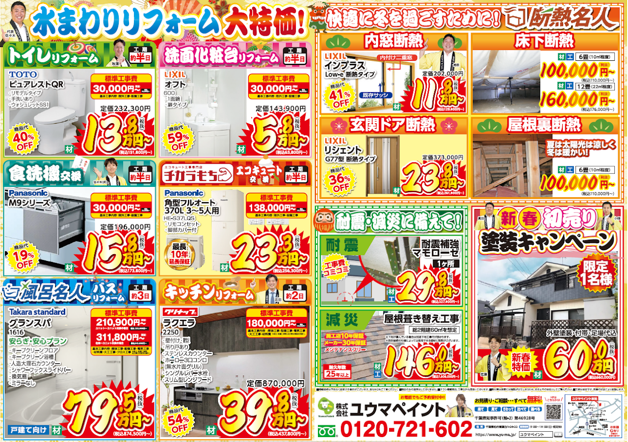 「外壁の汚れが気になる」「水回りを新しくしたい」「給湯器の調子が悪い」そんなお悩み、新年最初の運試しと一緒に解決しませんか?この2日間だけの特別な特典をたっぷりとご用意しました。